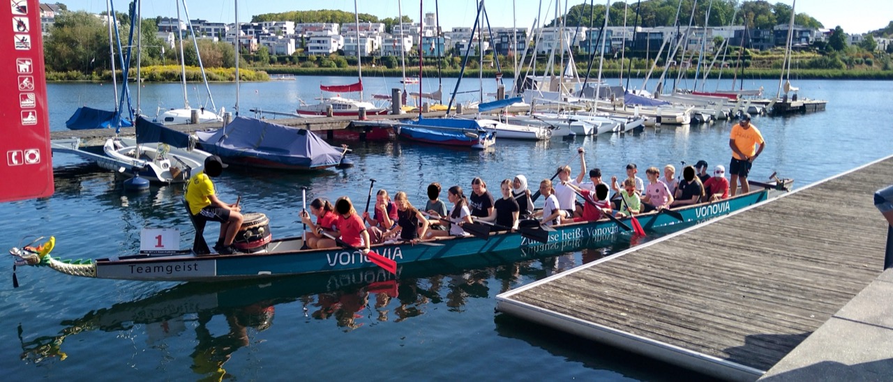Die Klasse 8a – aka Max-Planckton – hat beim Schülercup auf dem Phoenixsee einen erfolgreichen Renntag erlebt. Bei bestem Wetter hätte der Schuljahresauftakt für die Klasse, Frau Bald und Herrn Buddemeyer-Stewing kaum besser laufen können. Nicht zuletzt wegen des hohen Teamgeistes und des lauten Jubels aus der Elternschaft haben sie den zweiten Platz im B-Finale erstritten.