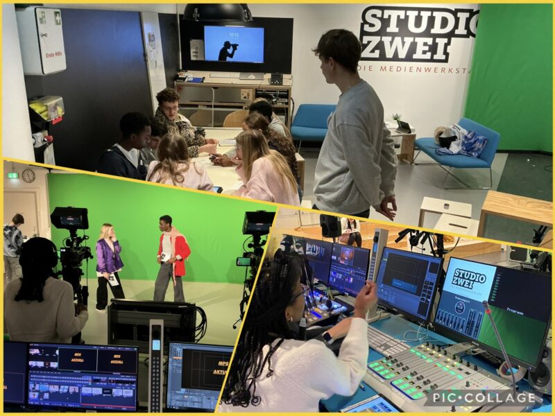 Sendung übernehmen? Läuft bei uns! Die bilinguale Klasse 9f beweist, dass sie nicht nur in Sprachen, sondern auch im TV-Business ganz vorne mitmischt. Statt Französischvokabeln gab es in der Medienwerkstatt Studio ZWEI des WDR in Köln ein lautes „Achtung, Aufnahme!“. Das Ziel: Eine lustige, selbst produzierte Fernsehsendung als Wissensmagazin.