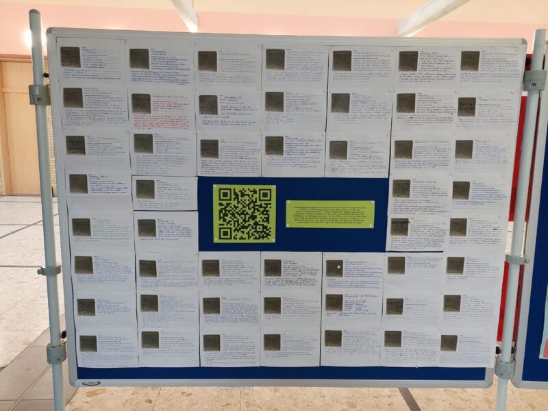 Auch die 10er, 9er und zwei Schülerinnen aus der Q1 beschäftigten sich mit verschiedenen Formen des Erinnerns und Gedenkens. Dabei richteten sie ihren Blick sowohl auf die Spuren des Nationalsozialismus direkt „vor unserer Haustür“ als auch auf Orte des Erinnerns wie Gedenkstätten, Museen und Veranstaltungen in Nordrhein-Westfalen.